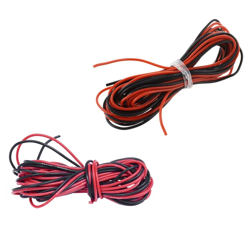 2X 26 Gauge & 24 Gauge Awg Silicone Rubber Wire Cable Red Black Flexible (2Set)