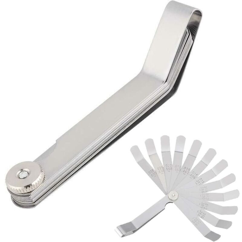 Ogni lama ha dimensioni incise luminescenti per una facile identificazione Descrizione: L'indicatore della paura è un buon strumento di misurazione con una metrica standard. Lo spessimetro della valvola è ampiamente utilizzato per controllare i giochi su punti di accensione, valvole, lanugine, spazi vuoti delle candele, pistoni, fasce elastiche, fasce dei freni, ecc. Lo spessimetro offset è facile da usare e sarà il tuo valido aiuto nel progetto.