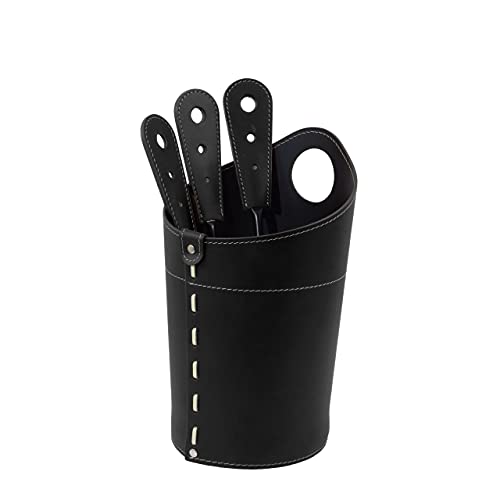 Gavemo AMBLY, Set Attrezzi 3 Pezzi da Camino con Sacca in Cuoio, Accessori da Camino, Limac Design®., Nero