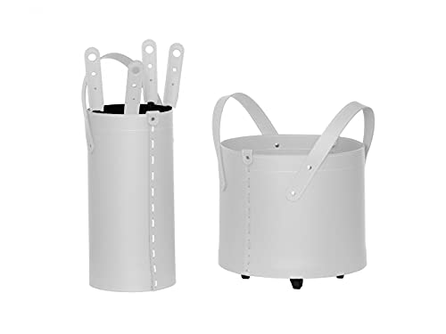 Gavemo TOCAD: Set da Camino in Cuoio Composto da portalegna, Borsa Porta-Ferri e Attrezzi da Camino, Idea Regalo, Limac Design®., Bianco