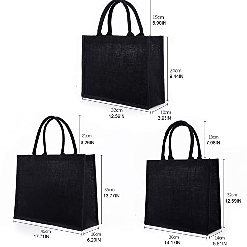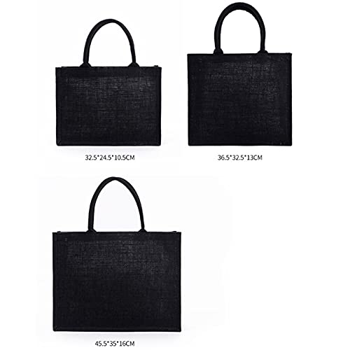 Gaviny Borsa per la spesa, borsa per la spesa riutilizzabile in tela da donna, borsa per la spesa in juta, 3 pezzi in puro nero