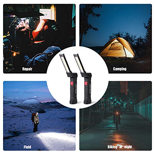 GAWAR Lampada da Lavoro USB Ricaricabile COB Lampade di ispezione Luce da Lavoro Pieghevole Portatile Torcia con Magnetica Clip e Gancio per Auto/Campeggio/Home e di Emergenza Uso (2 Pack Big)