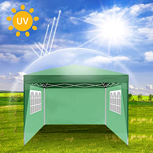 3x3 M Gazebo da Giardino Impermeabile Pieghevole Tendone Giardino con 3 Laterali - Antipioggia - Resistente ai Raggi UV (Verde)