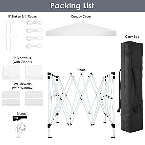 Facile da installare e da togliere: la tenda pop-up per gazebo con tutte le parti assemblate, è facile da montare e smontare senza attrezzi. Uno tenere una delle gambe mentre l'altra tirare un'altra gamba per allungare il telaio. Staccare tutto il velcro da parete dalle gambe prima di pop nella tettoia.