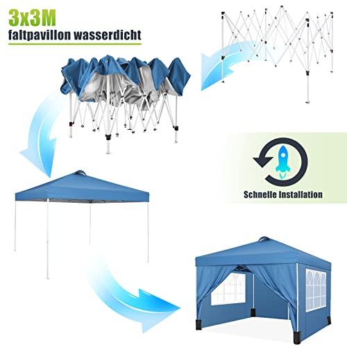 Gazebo pieghevole 3 x 3, impermeabile, per feste, giardino, terrazza, mercato