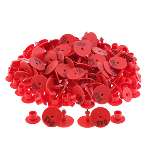 Gazechimp 100PCS Marchio Auricolare Numerato per Bestiame per Bovini da Latte, Ovino, Pecora, Numeri Chiari E Mai Sbiaditi, Facile da Identificare - Rosso
