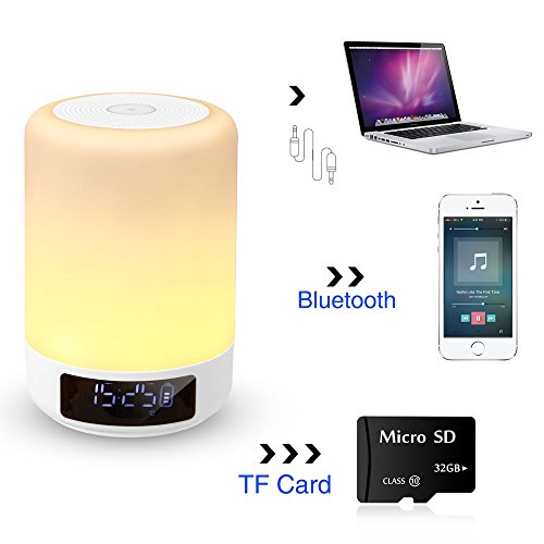 GB-Lun Lampada Altoparlante Bluetooth da comodino, Lampada Notturna a LED con Sensore Touch, Altoparlante Bluetooth portatile senza fili, Orologio sveglia con Luce notturna, sensore touch