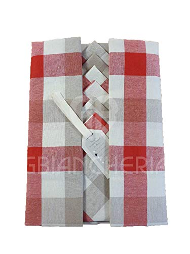 GBiancheria Tovaglia Rettangolare con TOVAGLIOLI in Cotone Tinto in Filo Vichy Rosso
