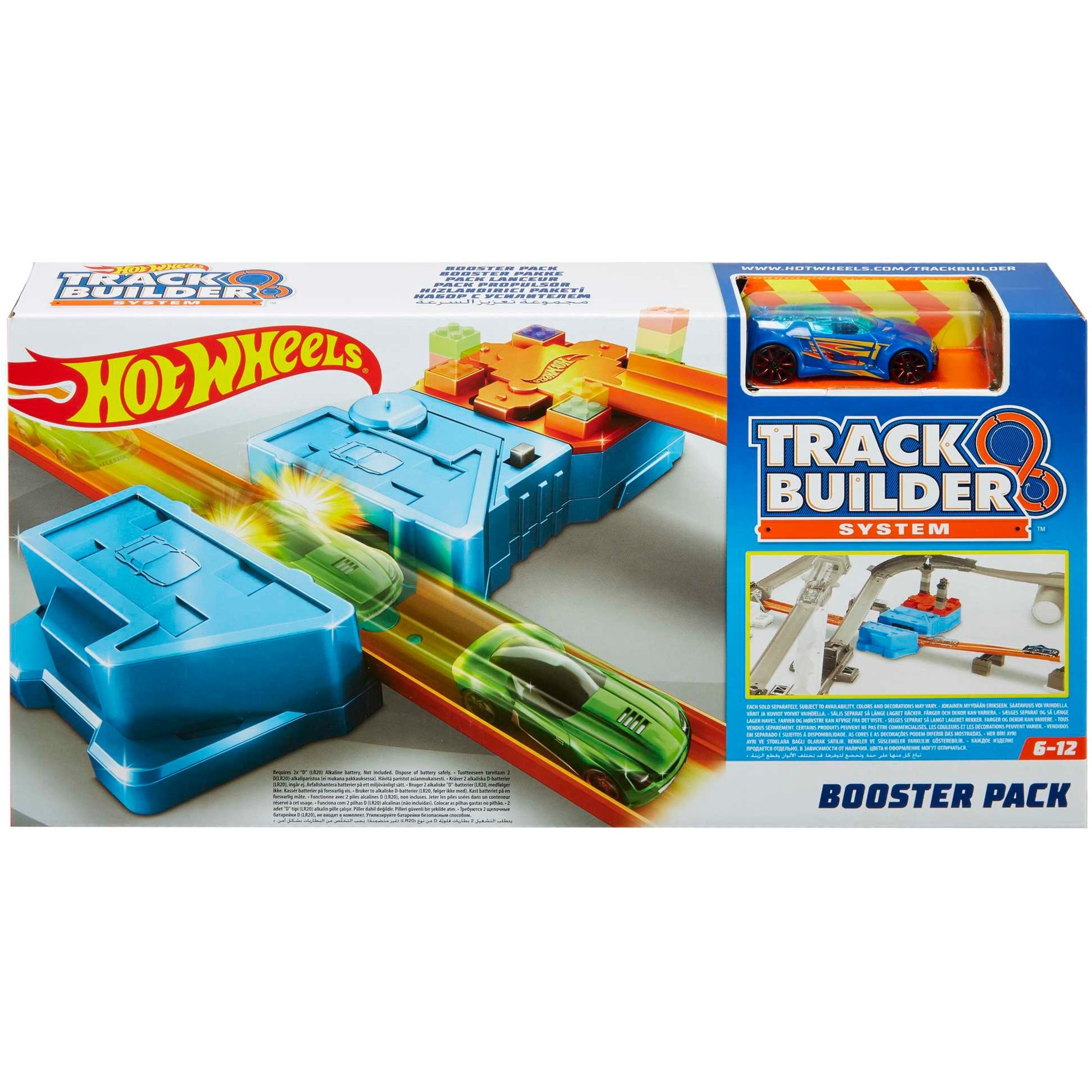 Con i set della serie Track Builder di Hot Wheels, puoi progettare i tuoi tracciati - secondo le tue preferenze, con grandi ostacoli e molti elementi diversi. Di conseguenza, i veicoli Hot Wheels raggiungono velocità vertiginose ed eseguono acrobazie epiche. Ogni set può essere combinato con altri set venduti separatamente. Il playset Accelerator offre molta velocità: l''acceleratore consente ai veicoli di volare quasi sopra la pista e viene fornito con due pezzi di binario arancioni. È incluso anche un veicolo Hot Wheels in scala 1:64.