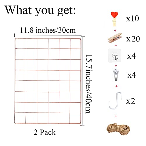 GBYAN Griglia da parete, 2 pezzi, con griglia per foto e pannelli per promemoria (oro rosa)