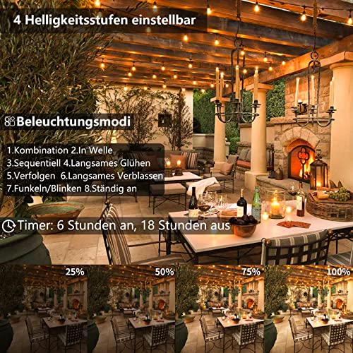 GCMacau Luci Da Esterno Giardino Solari, G40 Catena Luminosa Esterno 15M LED Luci Stringa Solare USB Ricaricabile con 25 Plastica Lampadine con Telecomando per Esterni Decorative Festa Matrimonio
