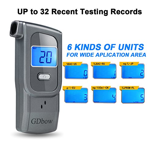 GDbow Etilalizzatore portatile Etilometro Tester di alcol Registrazione Recenti 32 Risultati di prova con 5 Bocchini - Grigio
