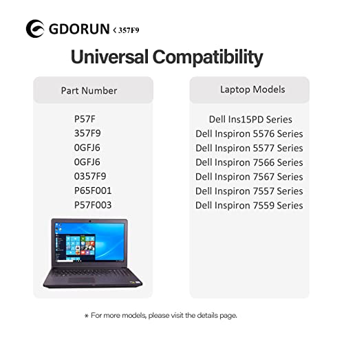 GDORUN 357F9 Batteria per Dell Inspiron 7000 Dump 15 7566 7567 7557 7559 I7559 5576 5577 INS15PD-1548B 1548R 1748B 1748R 2548R 2548B 2748R Gaming Series 0GFJ6 71JF4 P57F P57F003 P65F P65F001