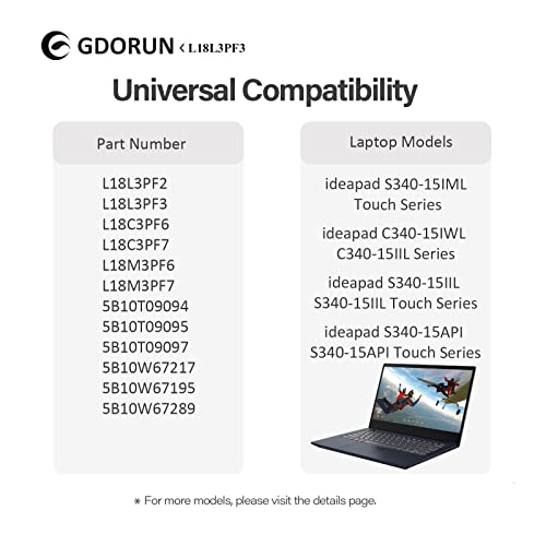 GDORUN L18L3PF3 L18M3PF7 Laptop Batteria per Lenovo ideapad S340-14IML/14API/14IIL/14IWL C340-15IWL/15IIL S340-15IWL/15API/15IIL Flex15IWL L18C3PF6 L18C3PF7 L18M3PF6 L18L3PF2 5B10T09094 52.5Wh Battery