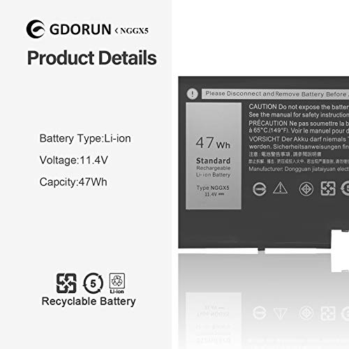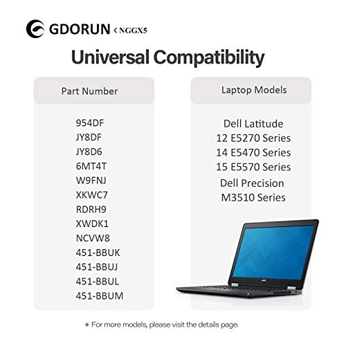 GDORUN NGGX5 Batteria per Dell Latitude E5270 E5470 E5570 (P48F001) Precision M3510 Series JY8D6 0JY8D6 6MT4T W9FNJ 954DF JY8DF XWDK1 NCVW8 XKWC7 RDRH9 53VJ6 451-BBUM BBUK BBUJ BBUL 11.4V 47Wh