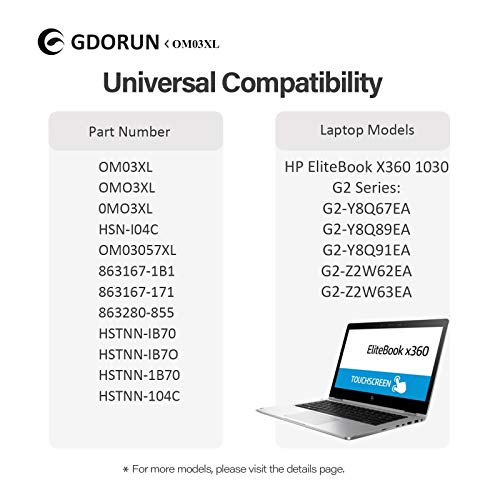 GDORUN OM03XL Batteria per HP EliteBook X360 1030 G2 13.3" Y8Q67EA Y8Q89EA 1GY31PA 1UX08PA 863167-171 863167-1B1 863280-855 HSTNN-IB70 HSTNN-IB7O HSTNN-1B70 HSN-I04C OMO3XL 0MO3XL OM03057XL 57Wh