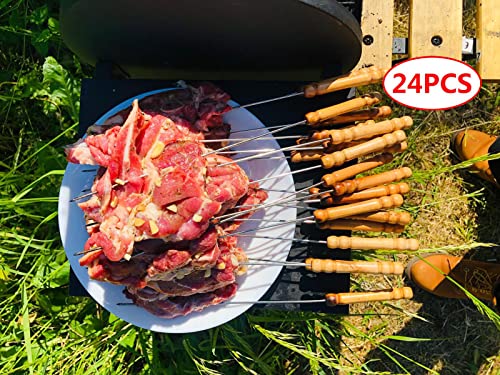 GDpride 24 spiedini per barbecue riutilizzabili in acciaio inox e metallo, set da 24 (rotondi con manici in legno)