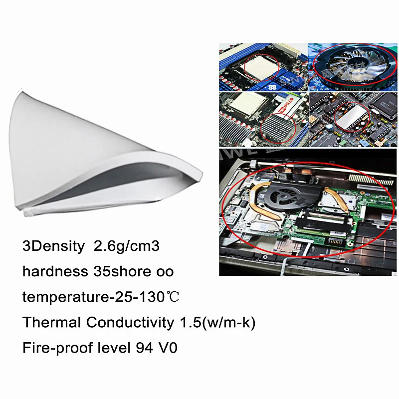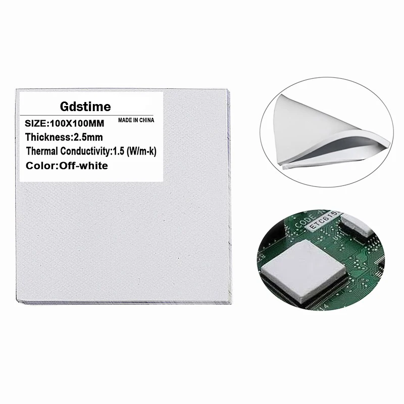 5Pcs Gdstime 100x100x0.5/1/1.5/2/2.5mm tichkess Thermal Pad CPU Heatsink Pad Cooling Conductive Silicone Thermal pad White