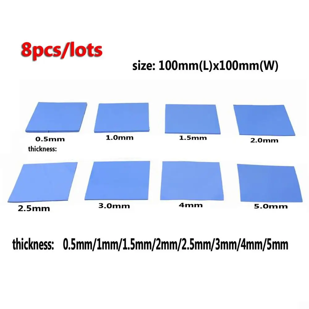 Gdstime 8pcs ThermalPad Conductive Silicone 100x100mm 0.5mm 1mm 1.5mm 2mm 2.5mm 3mm 4mm 5mm For CPU GPU IC Heatsink Cooling
