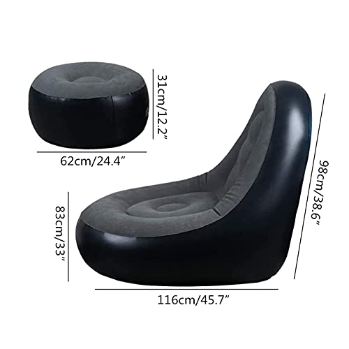 GDZHL Poltrona Relax Gonfiabile con Poggia Piedi, Sedia Gonfiabile Portatile Floccato Pieghevole Lounge Aria Pigro Chaise, per Balcone Soggiorno (Blu)