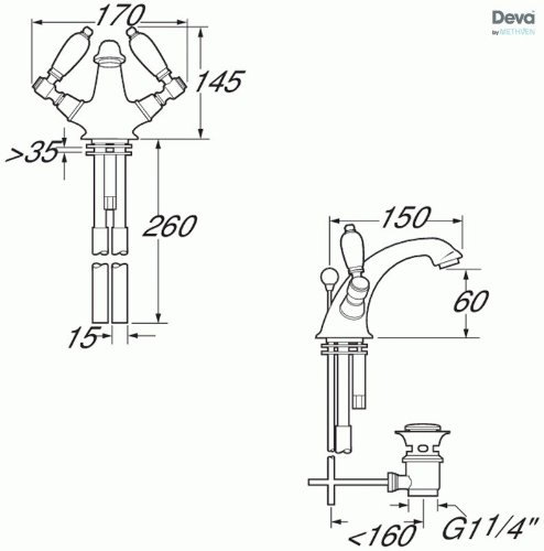 Deva GE04/501 - "georgiano" rubinetto del lavandino. miscelatore monocomando oro