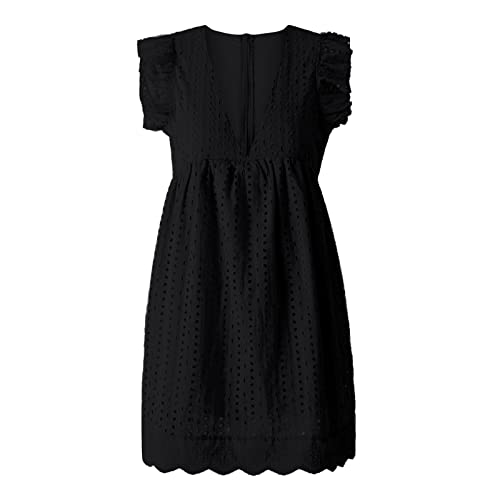Geagodelia Abito Estivo da Donna con Scollo a V a Maniche Corte con Volant Abito Casual con Tasche e Pantaloncini Foderati (Nero, 3XL)