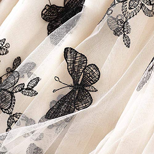 Geagodelia Gonna Longuette in Tulle a Vita Alta Elastica con Ricamo da Donna Gonna Lunga a Pieghe a Doppio Strato in Vita Classica Brillante (C-Beige)