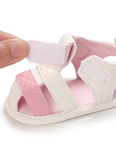 Geagodelia Sandali in pelle da Neonati a Punta Chiusa per Esterno Scarpine Estivo per Bambini (Rosa, 12-18M)