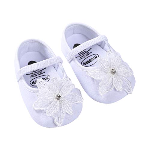 Geagodelia Scarpe da neonata per Bambina Mary Jane Morbide con Suola in Pizzo Principessa floreale Scarpine da passeggio in tela (Bianco, 0-6m)