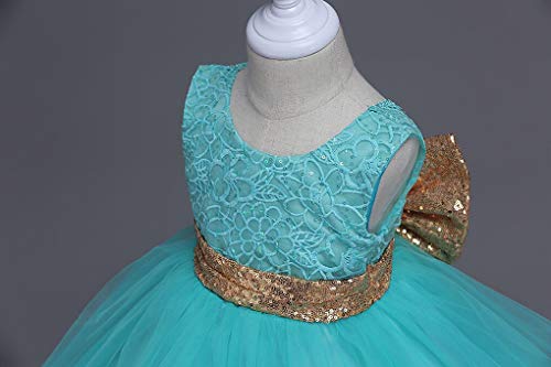 Geagodelia Vestito Cerimonia Bambina Abito Principessa Neonate 0-5 Anni Bimba Abito con Pizzo Fiocco Elegante per Matrimonio Festa Compleanno (Blu, 4-5 Anni)