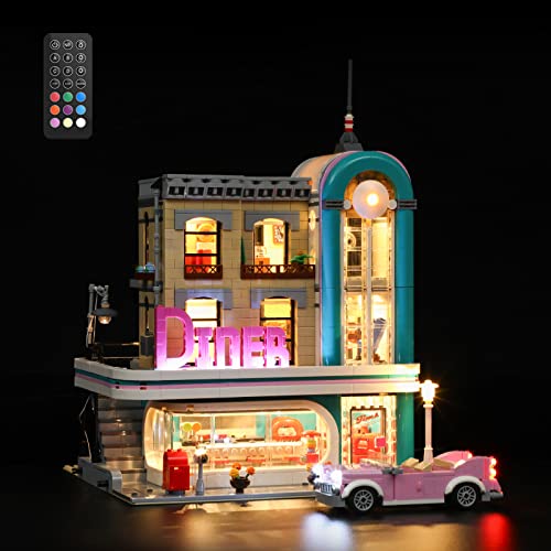 GEAMENT Set di Luci LED (Telecomando) Compatibile Con LEGO Downtown Diner - Kit Di Illuminazione per Creator 10260 Modello da Costruire (Modello di mattoncini non incluso)