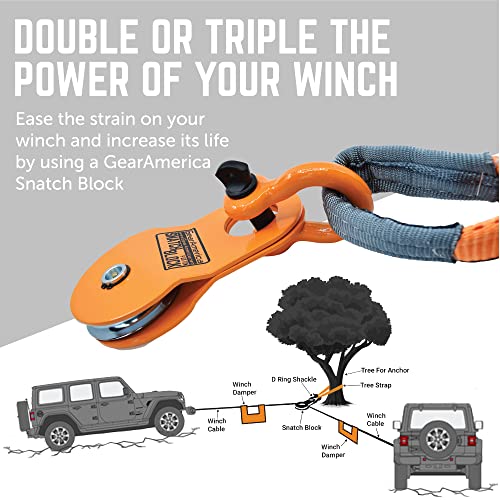 GearAmerica Off-Road Recovery Kit Cinghia di traino + Albero Saver + Heavy Duty Snatch Block puleggiaWinch linea di borse Dampener + Recupero finale 4X4 verricello & Accessori Rigging arancia