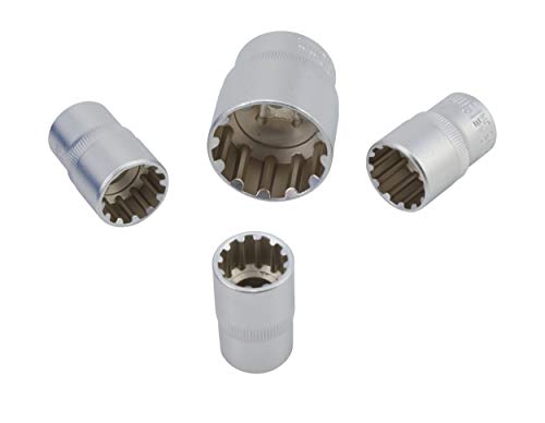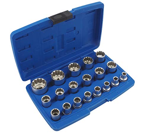 Gearlock - Set di chiavi a bussola, 19 pezzi, profilo E, denti multipli 8-32 mm, 1/2"