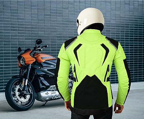 GearX Hivis - Giacca protettiva per moto, imbottitura posteriore esterna, Verde, L