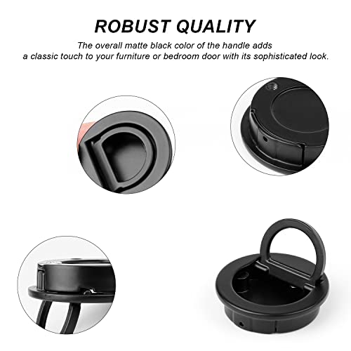 GEBAUM Gabinetto Maniglia Nascosta, Rotondo Incasso Maniglia di Sollevamento 2 Pezzi, Anello di Tiraggio Nascosto, per Armadietti, Cassetti, Guardaroba (Nero)