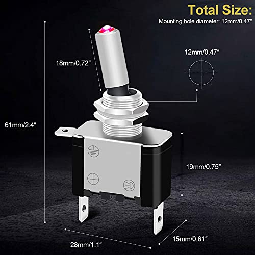 Tipo di connettore: SPST, 3 pin terminali ON/OFF, diametro del foro di montaggio: 12 mm;