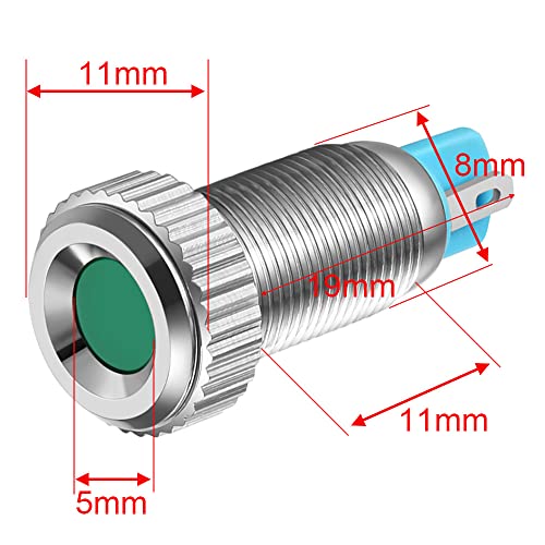 Gebildet 5pcs 8mm 12V-24VDC Rame Nichelato Indicatore LED Impermeabile Spia Luminosa(Verde)