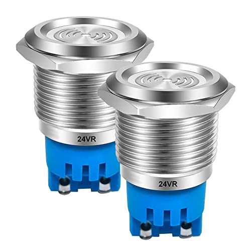 Gebildet 2pcs AC/DC 24V 22mm Impermeabile IP65 Acciaio Inossidabile LED Rosso Flash Allarme 90dB Indicatore Luminoso con Cicalino Lampada, per Pannello di Controllo Elettrico, Progetto Fai da te