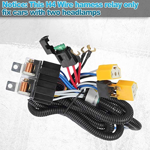 Gebildet 1pcs 12V H4 Fari Cablaggio di Conversione,Cablaggio Presa Relè Kit Filo Di Conversione per Fari a LED[Design a Due Relè] [Presa in Ceramica Resistente al Calore]