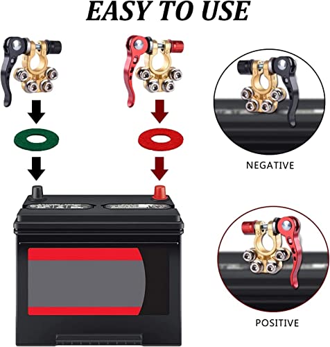 AMPIA APPLICAZIONE: questi terminali per batterie per autoveicoli possono essere utilizzati per auto, furgoni, roulotte, camper, batterie per camion, camper ecc. Assicurati solo che i morsetti della batteria colleghino il terminale corretto per la polarità corretta.