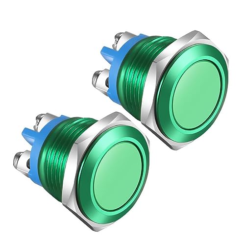Gebildet 2pcs 16MM interruttore a pulsante momentaneo IP65 impermeabile guscio in lega di alluminio 3A/12V 24V 36 DC 110V 250VAC 1NO SPST terminale a vite (guscio verde)