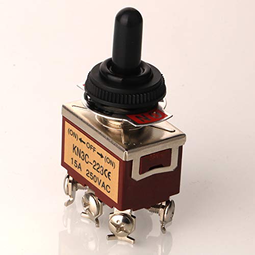 Gebildet 3 pezzi Univeral Heavy Duty 15A 250 V DPDT 6 Terminale ON/OFF/ON Interruttore a levetta a bilanciere momentaneo Metallo + 3 pezzi Cappuccio impermeabile
