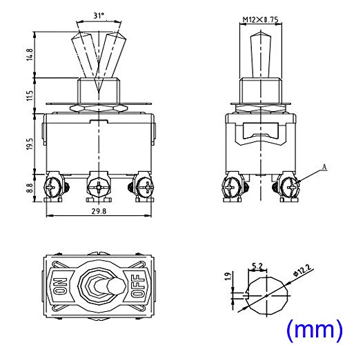 Tipo di connettore: DPDT, 6 pin terminali + 3 pezzi Cover impermeabile