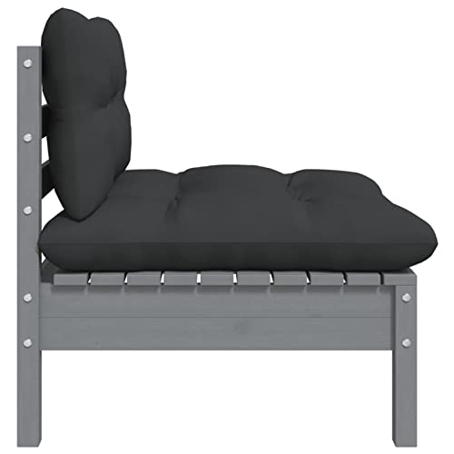 Gecheer Divano da Giardino a 2 Posti con Cuscini,Divano 2 Posti da Esterno,Divano da Esterno con Cuscini,Set Divani da Esterno in Legno,Divano Modulare da Giardino Grigi Massello di Pino