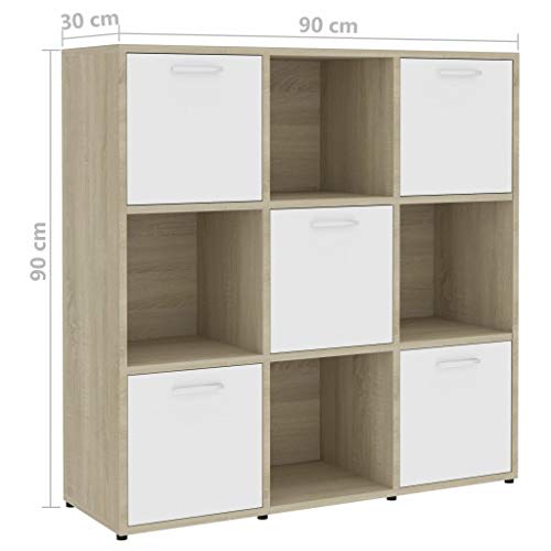 Gecheer Libreria a 9 Cubi Bianco e Rovere Sonoma, Scaffale per Studio e Ufficio, Libreria Scaffale con Ante, Libreria da Terra da Camera, Guardaroba Autoportante Portaoggetti con 9 Cube 90x30x90 cm