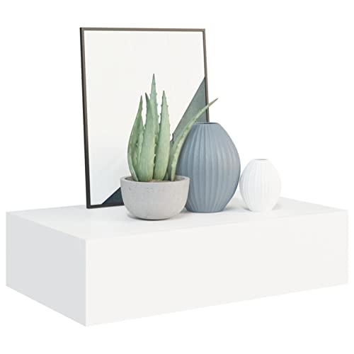 Gecheer Scaffale con Cassetti da Parete Bianco, Mensola a Muro Moderna, Ripiani da Muro, Scaffale Murale, Mensole Sospese a Parete Decorazione per Camera da Letto/Soggiorno/Bagno 40x23,5x10 cm in MDF