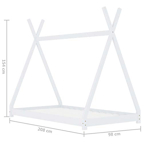 Gecheer Struttura Letto per Bambini in Legno Massello di Pino Bianco con Baldacchino Incrocio per Tende 90x200 cm,Letto per Bambini con Tetto in Legno,Giroletto Telaio Letto per Bambini con Tetto