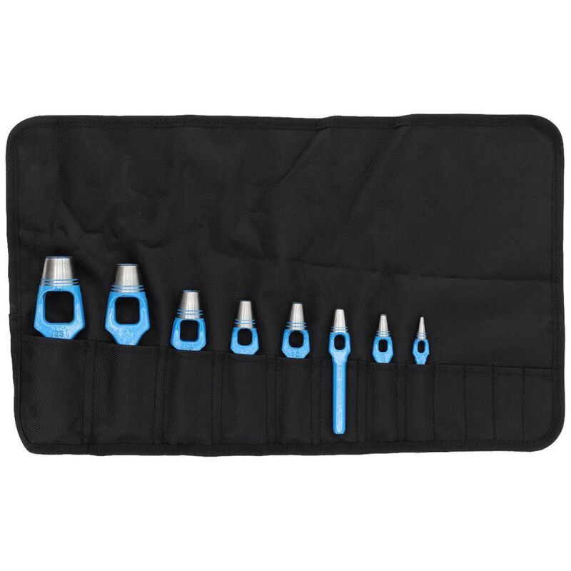 Dettagli tecnici Tipo prodotto Kit punzoni Caratteristiche Sec. DIN 7200, forma A Per forare cartone, cuoio, gomma, materiale sigillante o di consistenza morbida Tagliente temprato Verniciata colore blu In astuccio di plastica arrotolabile n. 570390 Incluso nella consegna Ferro forato 3, 6, 8, 10, 12, 16, 20, 25 mm Requisiti di sistema null