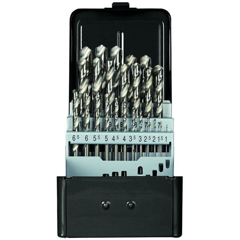 Angolo della punta: 118°, In cassetta di metallo, Contenuto: Ø 1-13 mm x 0,5 mm progressione Standard DIN 338 Typ N Elenco dei pezzi (testo) Spiralbohrer, geschliffen 1,0 1,5 2,0 2,5 3,0 3,5 4,0 4,5 5,0 5,5 6,0 6,5 7,0 7,5 8,0 8,5 9,0 9,5 10,0 10,5 11,0 11,5 12,0 12,5 13,0 mm Paese di origine China Conservazione Stahlblechkasette Peso netto [kg] 1,263 kg Angolo della punta 118 ° Certificato VDE 0 Registrazione REACH disponibile 0 Dimensioni dell'imballaggio 1 Contenuto (numero di pezzi) 25 tlg. Materiale (F) HSS Superficie dampfangelassen