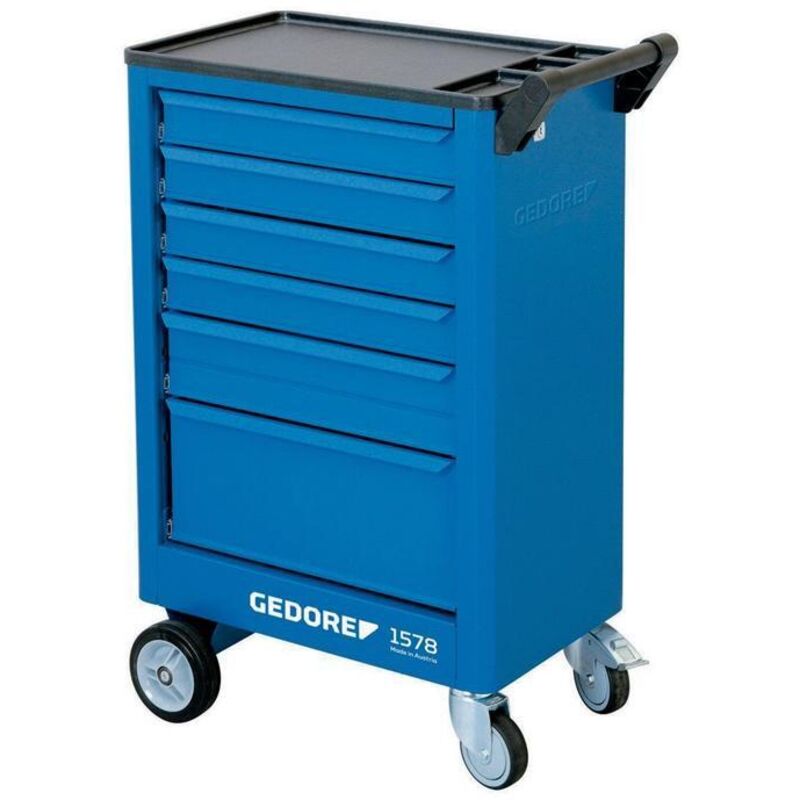 Officina auto numero 1578 Piattaforma di lavoro in plastica ABS con 3 piccoli tetti di pezzi Costruzione di lamiera di acciaio stabile Tacco 2 rotoli di grande corsa e 2 rulli di sterzo con fissatori totali 6 cassetti estraibili su ambo i lati Cassetti suddivisi individualmente Chiusura centralizzata mediante consegna a cilindro: comprende 6 divisori longitudinali e 2 divisori trasversali.